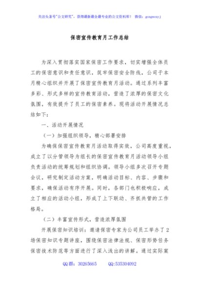 / 保密宣传教育月工作总结