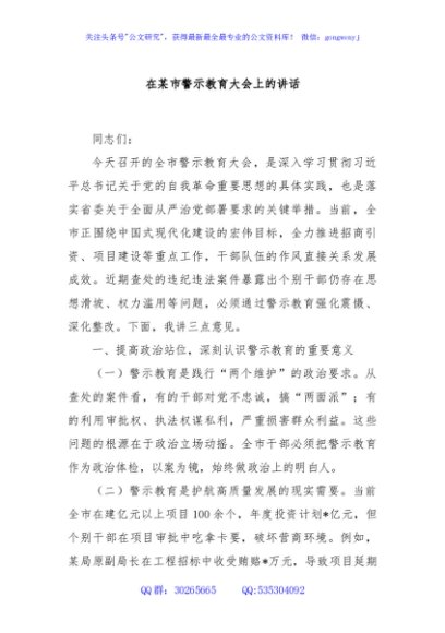 / 在某市警示教育大会上的讲话