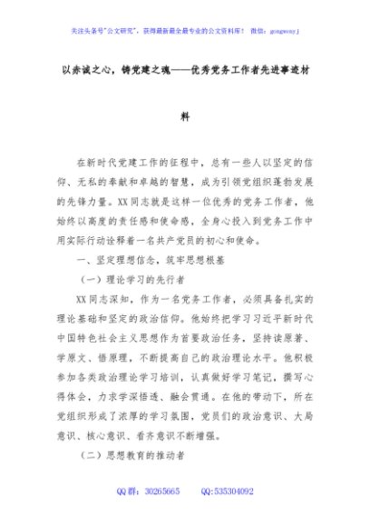 / 以赤诚之心,铸党建之魂——优秀党务工作者先进事迹材料
