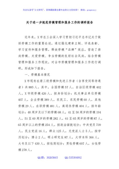 / 关于进一步规范劳模管理和服务工作的调研报告
