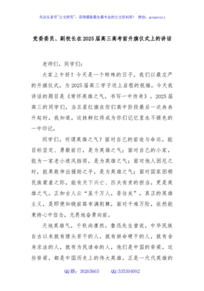 / 党委委员、副校长在2025届高三高考前升旗仪式上的讲话