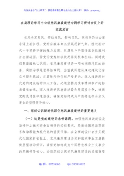 / 在局理论学习中心组党风廉政建设专题学习研讨会议上的交流发言