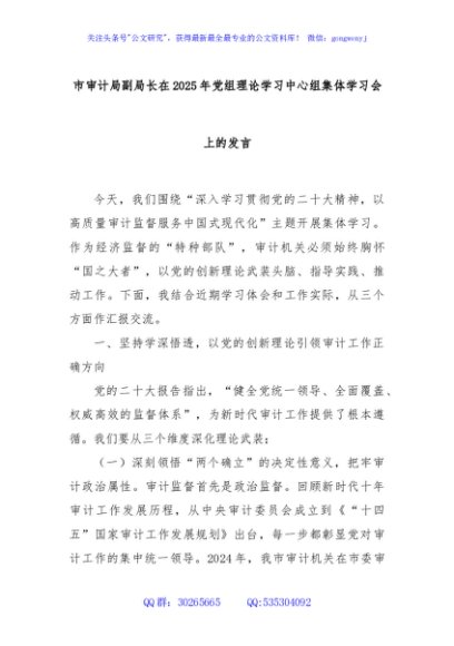 / 市审计局副局长在2025年党组理论学习中心组集体学习会上的发言