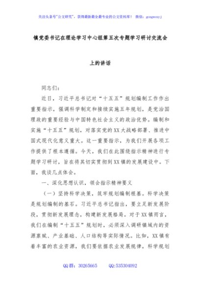 / 镇党委书记在理论学习中心组第五次专题学习研讨交流会上的讲话