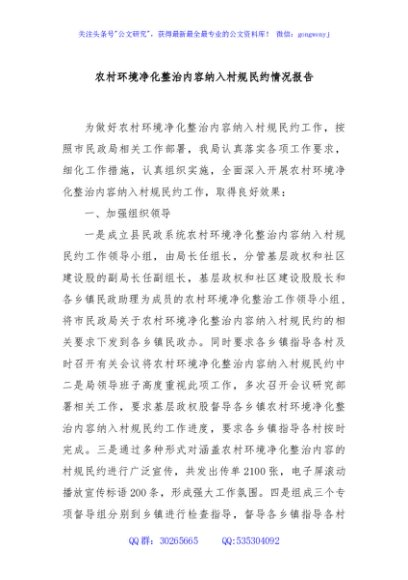 / 农村环境净化整治内容纳入村规民约情况报告