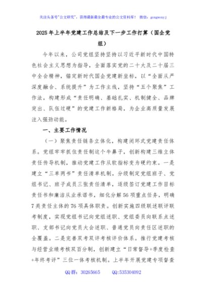 / 2025年上半年党建工作总结及下一步工作打算(国企党组)