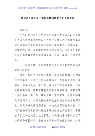 / 财政局长在全局干部职工警示教育大会上的讲话