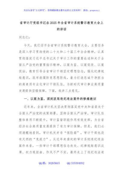 / 省审计厅党组书记在2025年全省审计系统警示教育大会上的讲话