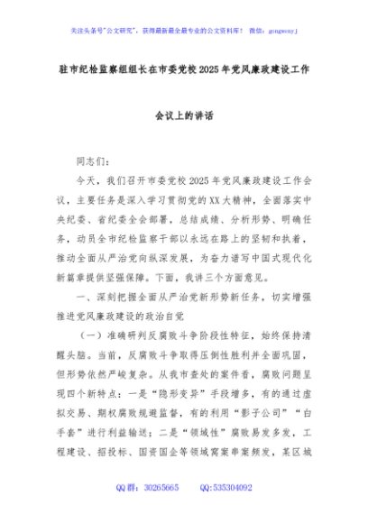 / 驻市纪检监察组组长在市委党校2025年党风廉政建设工作会议上的讲话