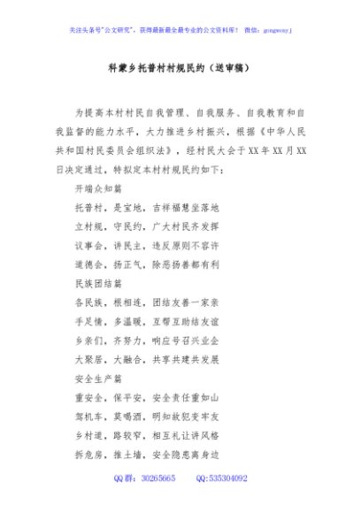 / 科蒙乡托普村村规民约(送审稿)