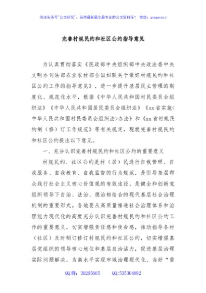 / 完善村规民约和社区公约指导意见