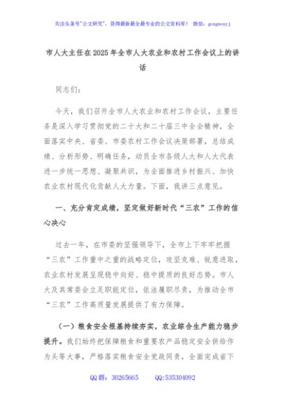 / 市人大主任在2025年全市人大农业和农村工作会议上的讲话