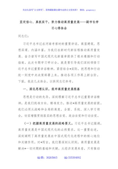 / 坚定信心、真抓实干,努力推动高质量发展——副市长学习心得体会