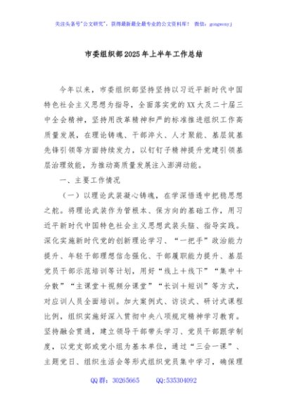 / 市委组织部2025年上半年工作总结
