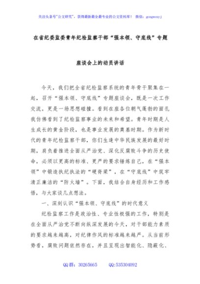 / 在省纪委监委青年纪检监察干部“强本领、守底线”专题座谈会上的动员讲话