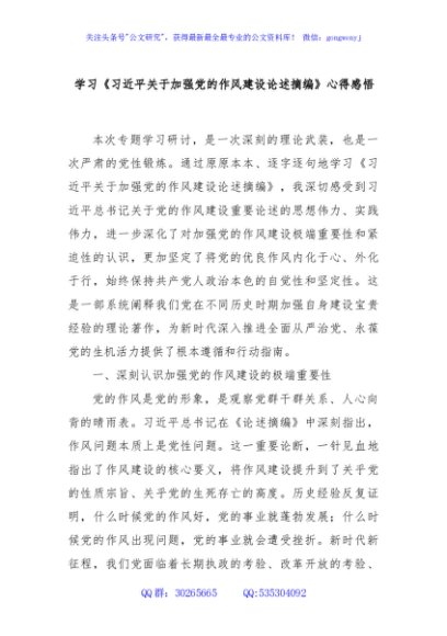 / 学习《习近平关于加强党的作风建设论述摘编》心得感悟