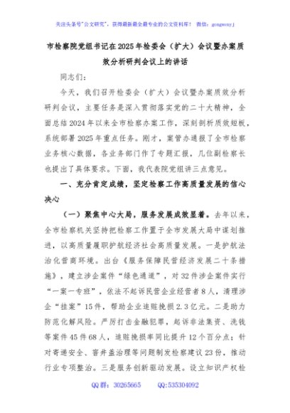 / 市检察院党组书记在2025年检委会(扩大)会议暨办案质效分析研判会议上的讲话