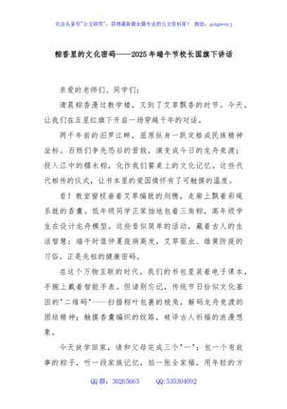 / 粽香里的文化密码——2025年端午节校长国旗下讲话
