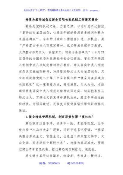 / 持续为基层减负应健全四项长效机制工作情况报告