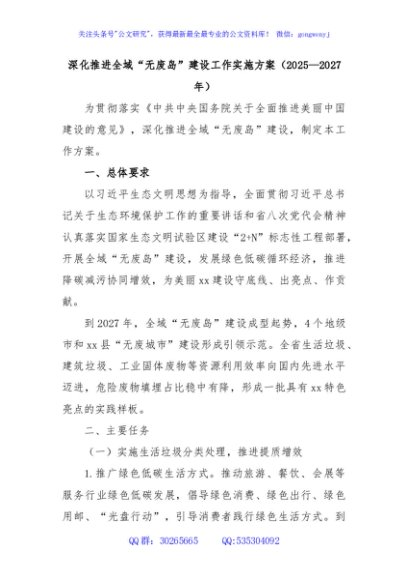 / 深化推进全域“无废岛”建设工作实施方案(2025—2027年)