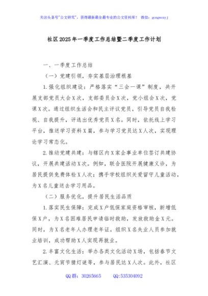 / 社区2025年一季度工作总结暨二季度工作计划