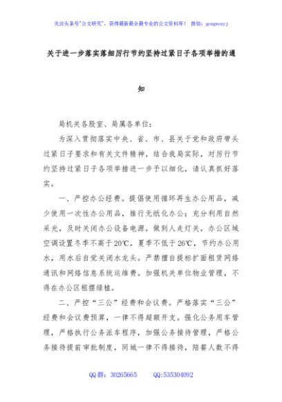 / 关于进一步落实落细厉行节约坚持过紧日子各项举措的通知