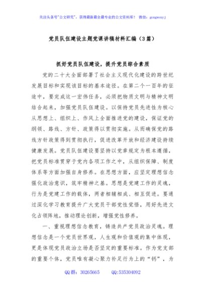 / (3篇)党员队伍建设主题党课讲稿材料汇编