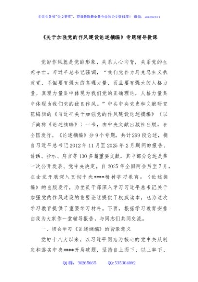 / 《关于加强党的作风建设论述摘编》专题辅导授课
