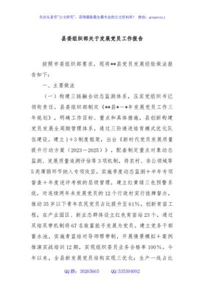 / 县委组织部关于发展党员工作报告