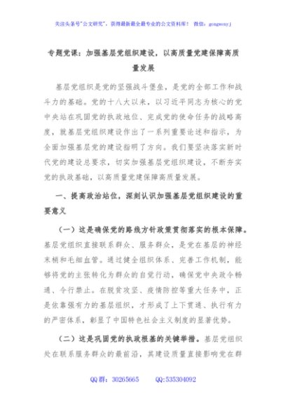 / 专题党课:加强基层党组织建设,以高质量党建保障高质量发展