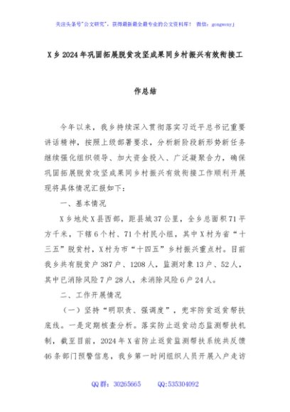 / X乡2024年巩固拓展脱贫攻坚成果同乡村振兴有效衔接工作总结