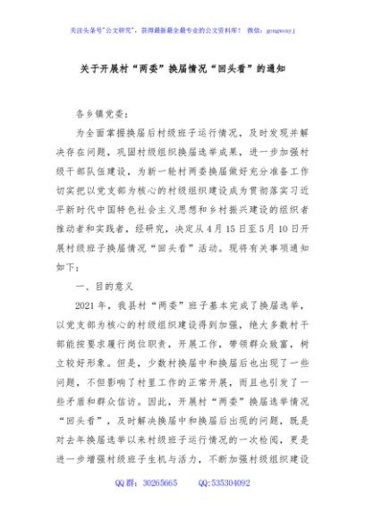 / 关于开展村“两委”换届情况“回头看”的通知
