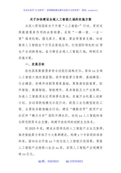 / 关于加快建设全域人工智能之城的实施方案