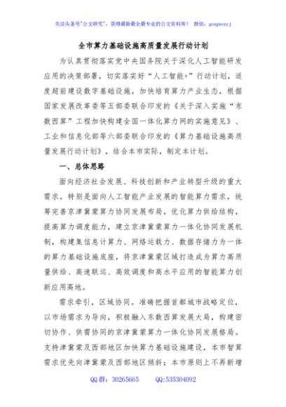 / 全市算力基础设施高质量发展行动计划