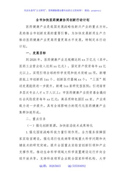/ 全市加快医药健康协同创新行动计划