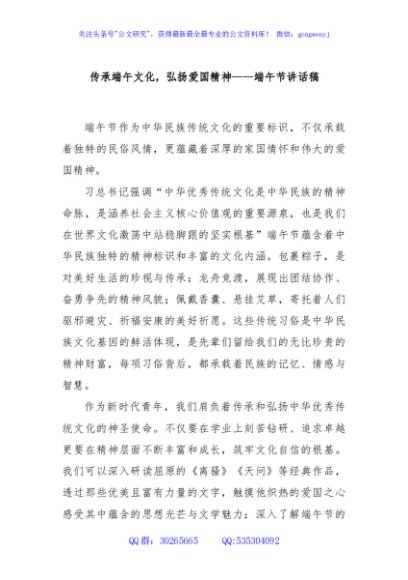 / 传承端午文化,弘扬爱国精神——端午节讲话稿
