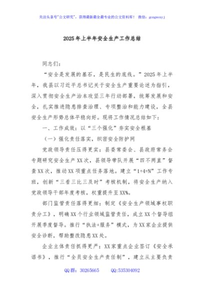 / 2025年上半年安全生产工作总结