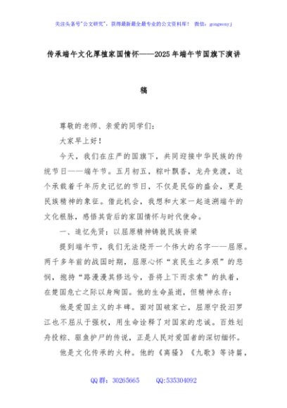 / 传承端午文化厚植家国情怀——2025年端午节国旗下演讲稿