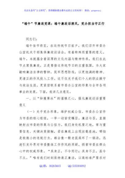 “端午”节廉政党课:端午廉政话清风,党办担当守正行