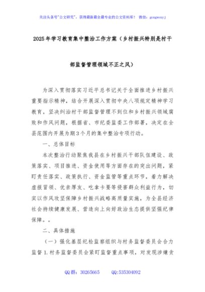 / 2025年学习教育集中整治工作方案(乡村振兴特别是村干部监督管理领域不正之风)