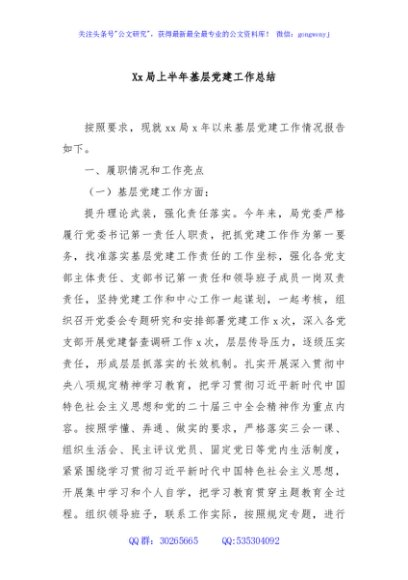 / Xx局上半年基层党建工作总结