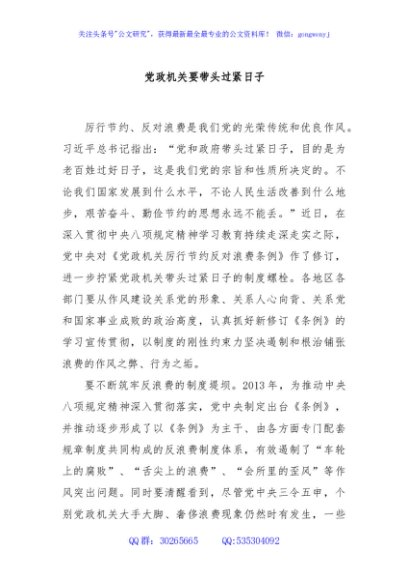 / 党政机关要带头过紧日子