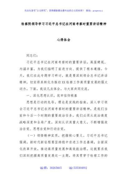 / 检察院领导学习习近平总书记在河南考察时重要讲话精神心得体会