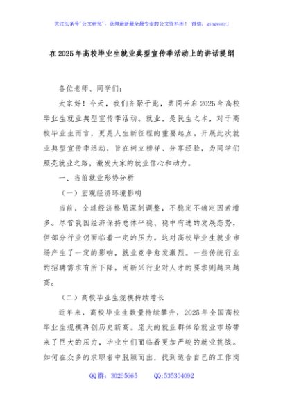 / 在2025年高校毕业生就业典型宣传季活动上的讲话提纲