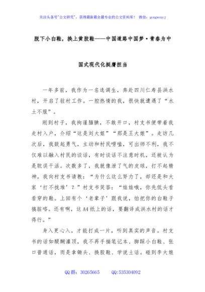 / 脱下小白鞋,换上黄胶鞋——中国道路中国梦·青春为中国式现代化挺膺担当