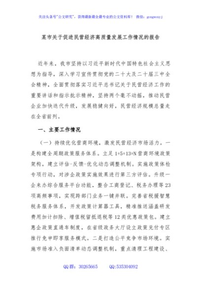 / 某市关于促进民营经济高质量发展工作情况的报告
