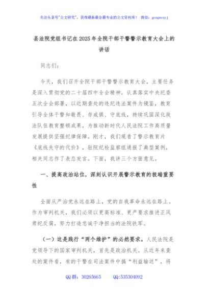 / 县法院党组书记在2025年全院干部干警警示教育大会上的讲话
