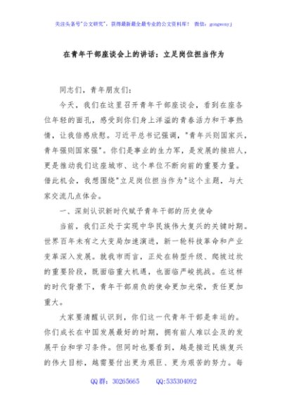/ 在青年干部座谈会上的讲话:立足岗位担当作为