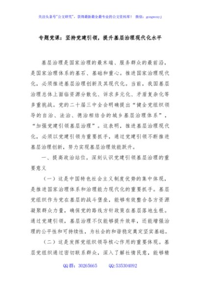 / 专题党课:坚持党建引领,提升基层治理现代化水平