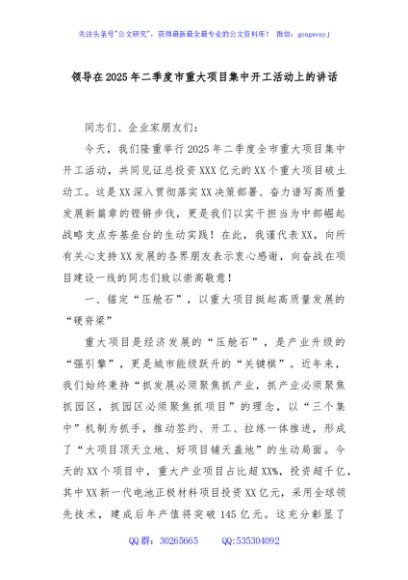 / 领导在2025年二季度市重大项目集中开工活动上的讲话